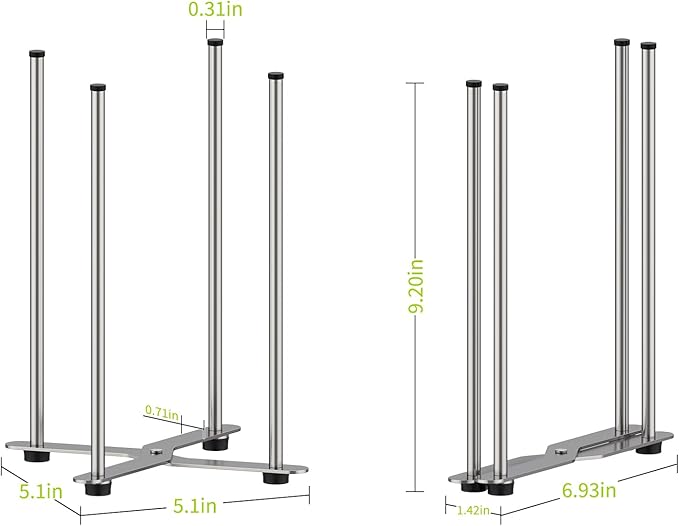 • 【Sturdy Structure】: made of 304 stainless steel, rust proof, the foldable base and four poles are thick and sturdy enough to hold wine decanters, there are also four plastic slip-proof bases on the bottom to prevent the bottle drying rack from slipping or flipping over.