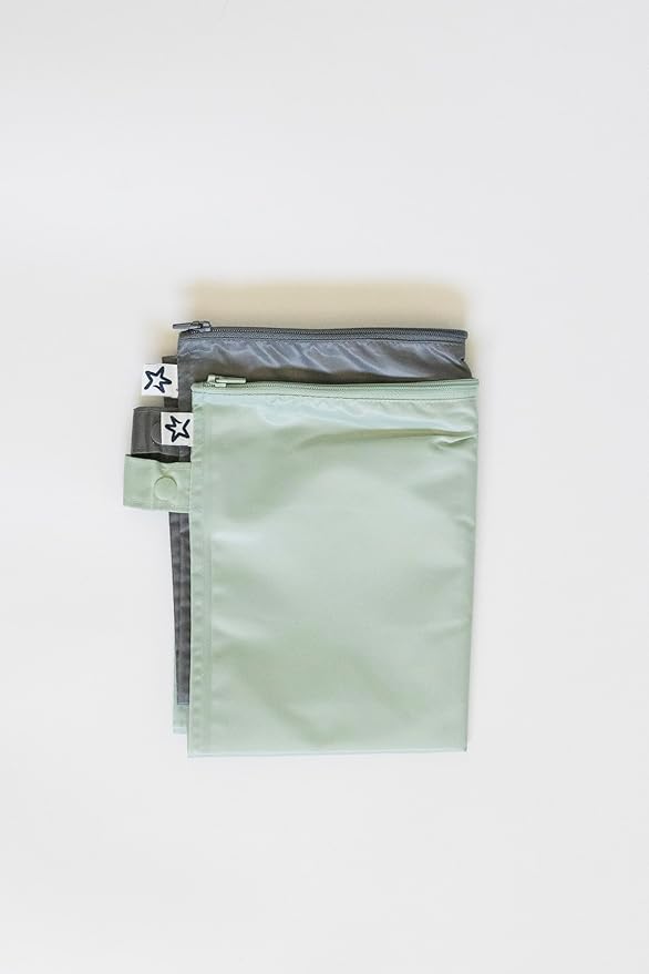 Tiny Twinkle Mess proof Waterproof Wet Dry Bag,2pk Reusable Wet Bags for Swimsuits&Baby Clothes,Leakproof Wet Bag,Waterproof Bag for Travel&Diaper bag,Wet Bags for Baby (Sage, Charcoal)