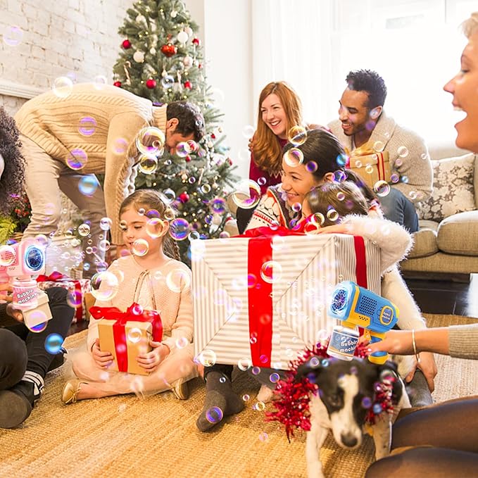 • ❤Multiple Bubble Solution Refills: Bubble machine gun for kids 3-5 includes 2 bubble guns (blue and pink), 4 bottles refills and 10bags concentrates. These Bubble machines for kids ages 5-8 are incredibly easy to operate, making them suitable for kids and adults alike.