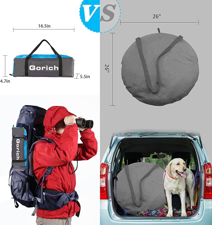 • Easy Set Up & Carry: Setting up fast within minutes. Gorich beach tent is much easier to fold than any kind of Pop-up tent. It could fold down to a travel size of 16.5"H x 5.5"L x 4.7"W, weight 4.85 lbs, with a compact carrying bag that you even won't notice on your backpacks, much easy to carry