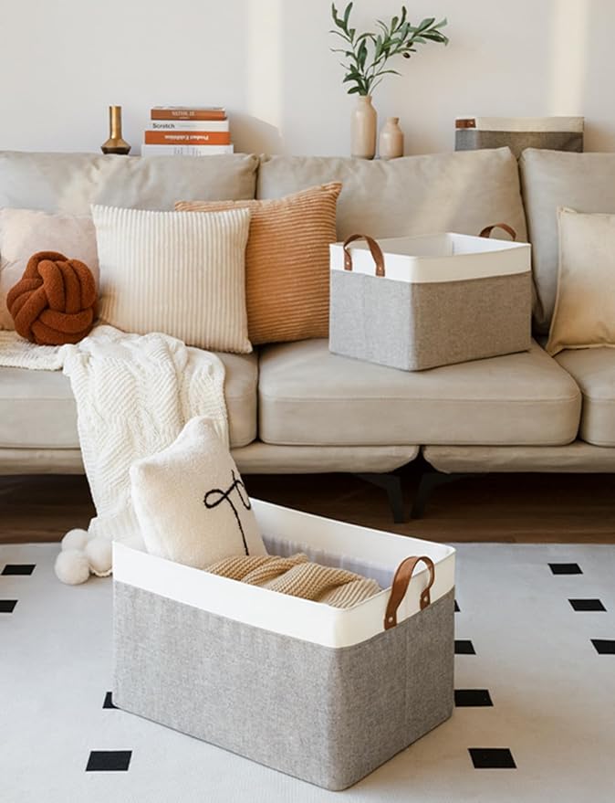 • Handle with Ease: With the 2 PU handles securely riveted to the sides of the storage bin, you can easily carry items without tearing the handles.