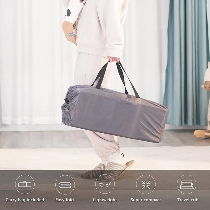 • 【Safety and Lightweight】- The stable trapezoidal design, the four corners of the bottom are evenly stressed to prevent the playard from tilting and enhance stability, so that your baby can play safely. The portable travel crib lightweight structure is easy to assemble. Take it with you in the car, on the train, or on the plane whenever you want to travel.