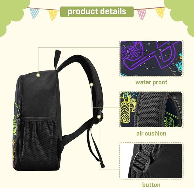 Toddler Monster Truck Waterproof Mini Backpack Boys/Girls Cute Small Kindergarten Pre School Bag (S)