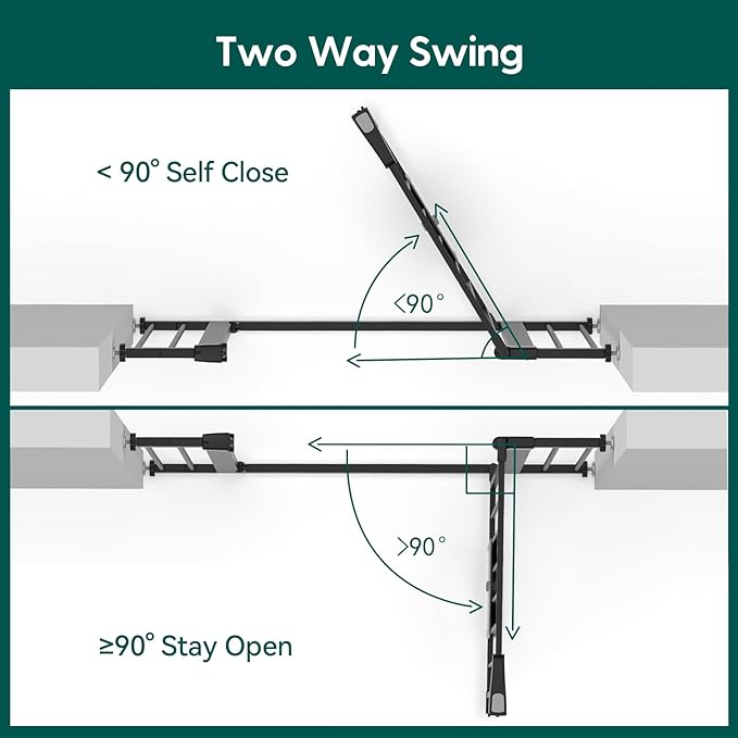 • EASY TO SET UP: Simple and quick pressure installation, not require additional tools and no holes in the wall. It is equipped with an auto-close feature that gently closes the door and a stay-open feature that keeps it open. The baby gate can be opened easily with one-hand operation even while holding a baby.