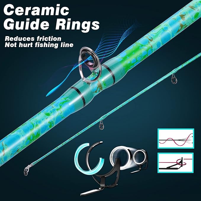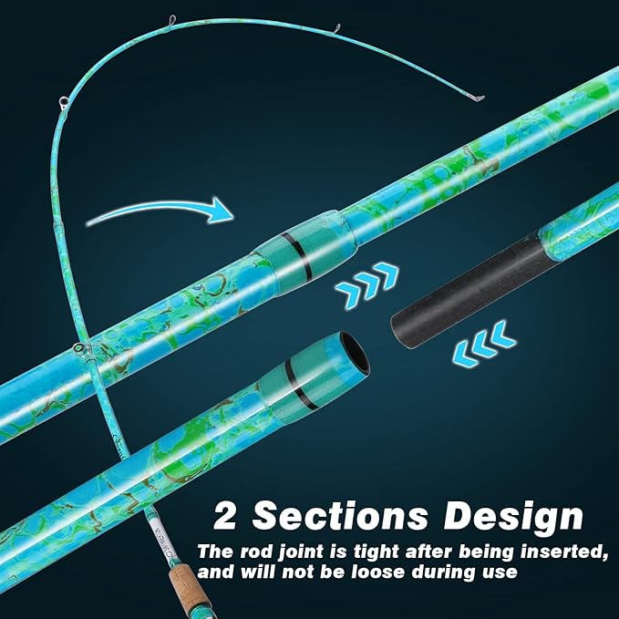 • EASY AND PORTABLE: Ultra-light weight, easy to carry,suitable for travel, 2-Piece Rod and easy to disassemble, you won't get tired of fishing.The welded stainless steel guides with Zirconium Oxide rings for superior casting distance and accuracy while dissipating heat more efficiently which delivers excellent durability with monofilament and braided lines. Perfect for Father's Day, Boyfriend, Fiance, Husband and Birthday Gift.Can enjoy the weekend with family for Hiking or Traveling!