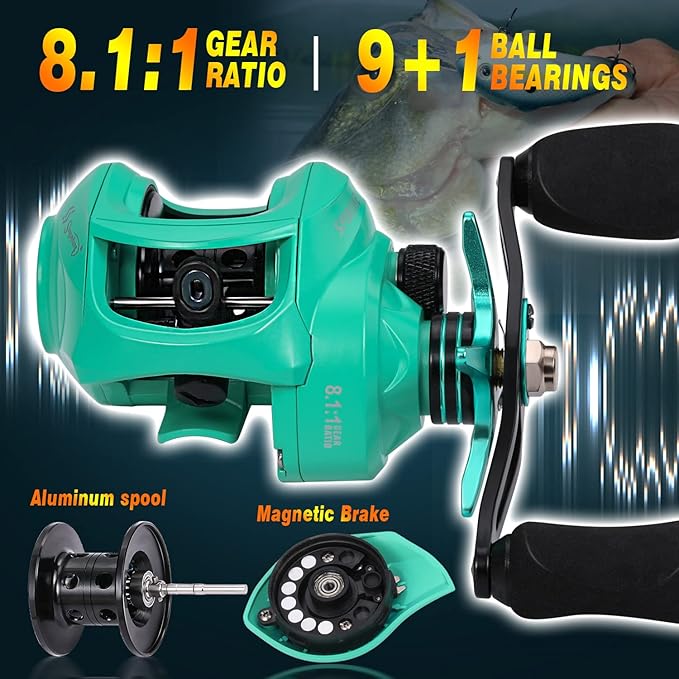 • THE REEL: The SL fishing reel is loaded with incredible features like solid brass pinion gears, strengthened aluminum drivetrain, 20% thicker stainless steel main shaft and sealed multi-disc carbon drag system, direct drive screw-in aluminum handle, hollow nest shaped spool, smooth positive click drag. These features are typically found in reels in a much higher price range. The 11+1 shielded stainless steel ball bearings ,5.2:1 gear ratio, to make every fishing experience a memorable one.