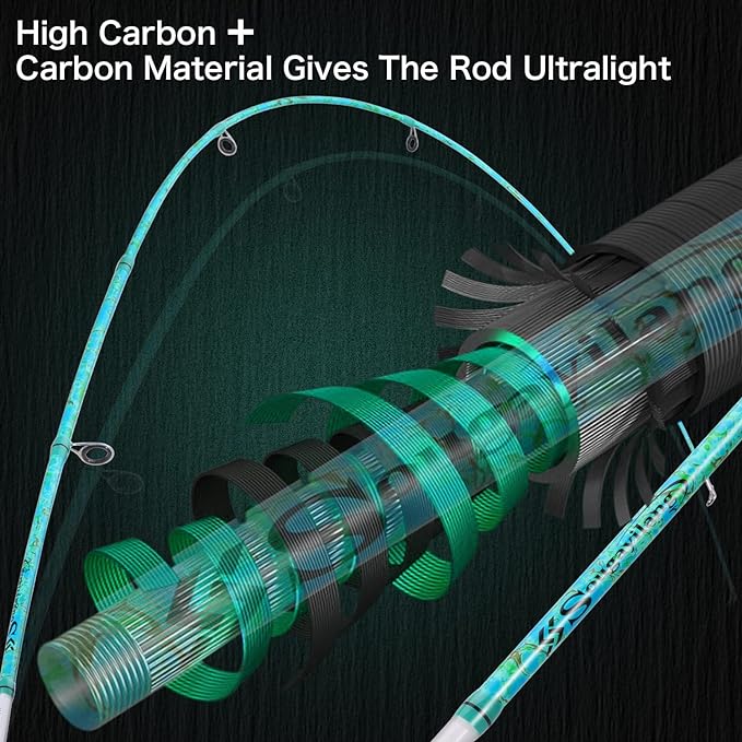 • EASY AND PORTABLE: Ultra-light weight, easy to carry,suitable for travel, 2-Piece Rod and easy to disassemble, you won't get tired of fishing.The welded stainless steel guides with Zirconium Oxide rings for superior casting distance and accuracy while dissipating heat more efficiently which delivers excellent durability with monofilament and braided lines. Perfect for Father's Day, Boyfriend, Fiance, Husband and Birthday Gift.Can enjoy the weekend with family for Hiking or Traveling!