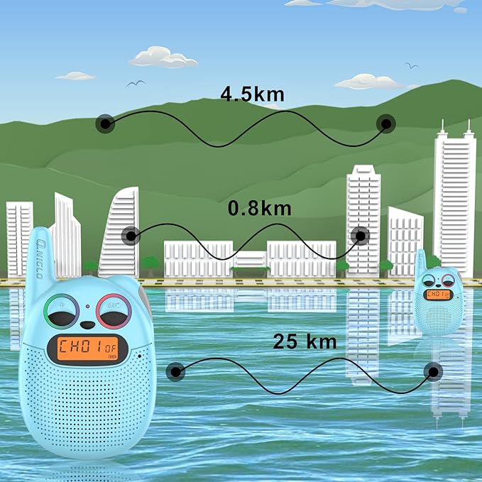 • ๐—˜๐—ฎ๐˜€๐˜† ๐˜๐—ผ ๐—จ๐˜€๐—ฒ: Simply press the walkie talkie "Talk" button to talk. Available 22 channels and codes to be set. The VOX function provides seamless communication with your kids, you do not have to stop and press any button while answering the call. Also, there is a key lock feature which locks the buttons so kids can't mess with the settings. Your children will enjoy up to 3 miles of uninterrupted wireless communication.