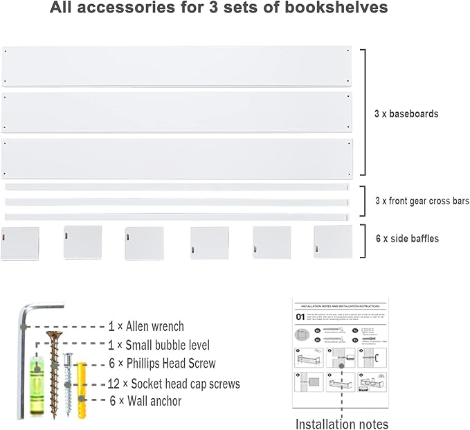 • Easy to Install: This set of floating wall bookshelves is easy to install, with the included installation instructions and hardware needed for installation, you just need to follow the instructions to fix the children's bookshelf on the wall. This set of children's storage and organizing shelves is also easy to clean, just wipe with a wet rag and then dry with a dry rag.