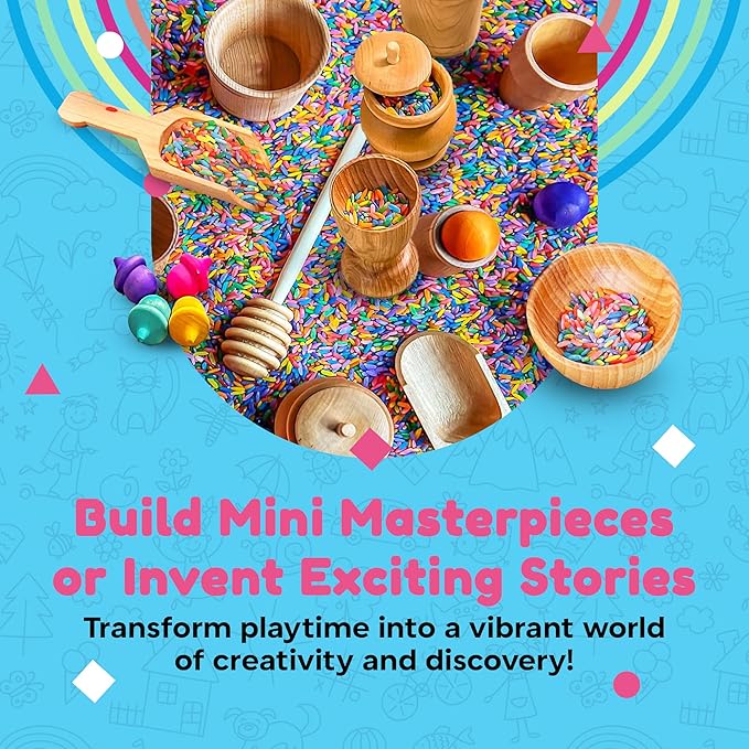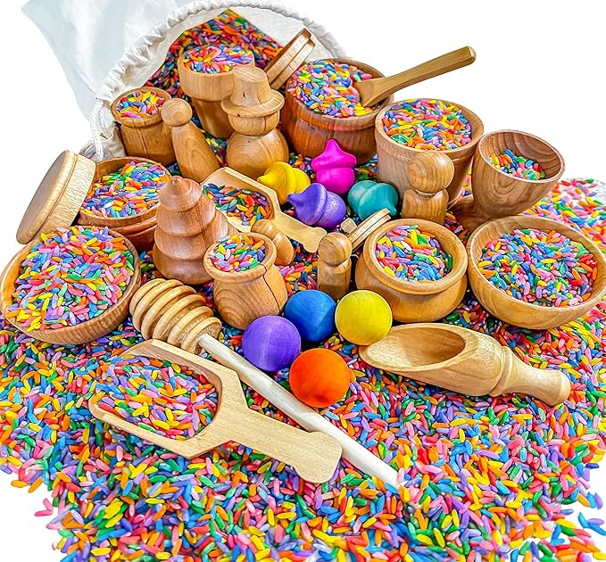 • Endless Possibilities: Available in both 10-piece and 30-piece options, this toddler sensory bin set provides a variety of tools such as a honey dipper, scoops, and bowls. Our sensory table toys are suitable for exploring sensory fillers like rice, beans, and oats
