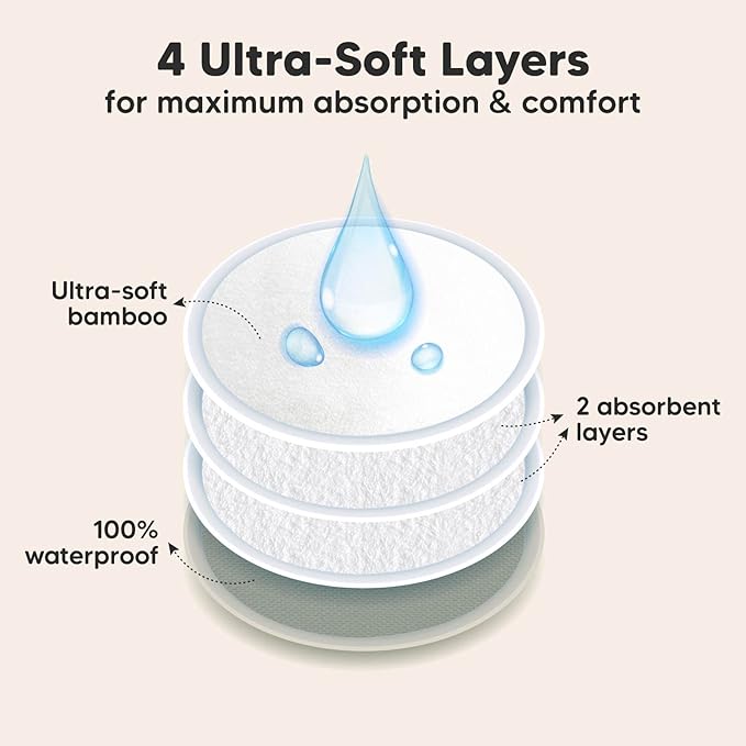 • Great For Leakages – Leakage is a thing of the past with our 4-layer nursing pads. KeaBabies Nursing Pads feature three layers of ultra-absorbent viscose derived from bamboo, sealed with a protective waterproof outer layer for extra security on the nipple pads. Tip: If you experience a heavy flow, please replace breast pads every 5-6 hours.