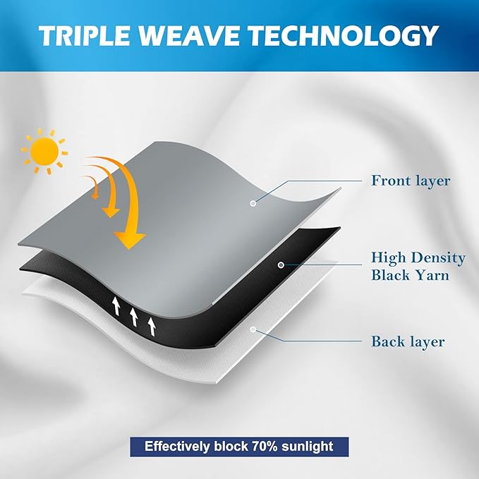 • Grommet Construction, Good To Go: Thread trimmed and wrinkle-free, ring (1.6 inch inner diameter) fits easily with standard curtain rods. All sets for you to put them up right away. Triple weave blackout fabric balances room temperature by insulating against summer heat and winter chill. Protect your furniture, floors.