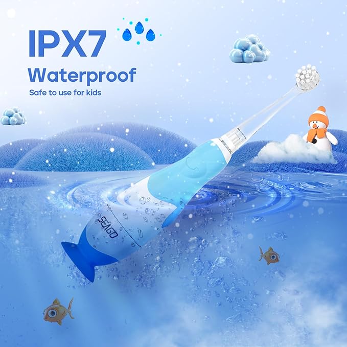 • IPX7 Waterproof Design: Seago children's power toothbrushes can be used in the shower. Long battery life supported by AAA battery,Batteries not included in the package,so you can safely use it in the bathing or showering