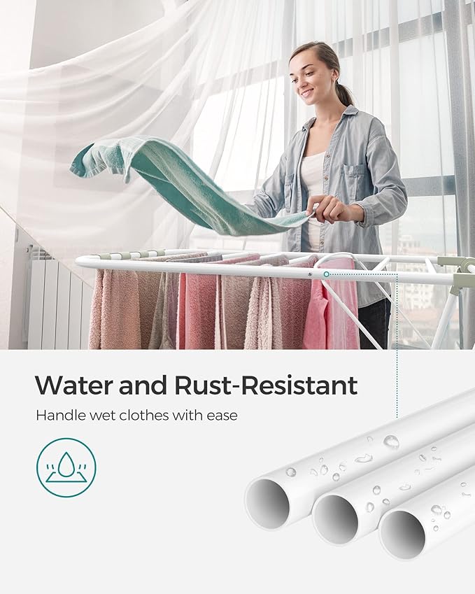 • [Rust-Resistant & Heavy-Duty] Boasting thick steel tubes with a specially treated finish and durable plastic connectors, this clothes drying rack is capable of holding up to 55 lb. You won't have to worry about it buckling or rusting over time