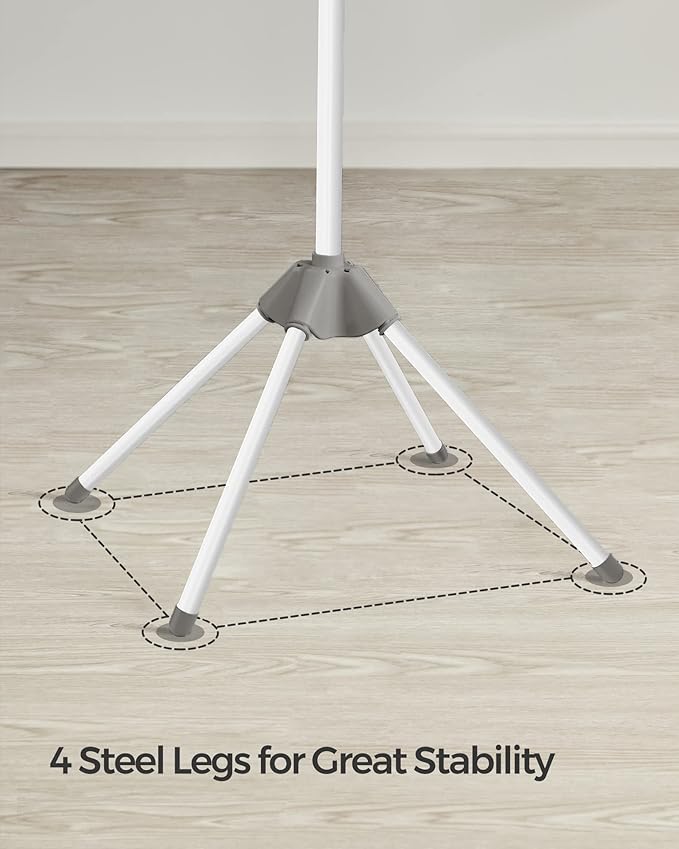 • [Foldable & Space-Saving] Standing at 25.6”D x 25.6”W x 72”H during use, this clothes drying rack takes up little space, perfect for small spaces. Fold the arms and legs into a small size of 2.2”D x 2.2”W x 82.7”H, it will stay out of the way after use