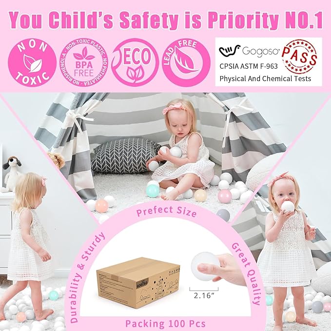 GOGOSO Ball Pits Balls for Toddlers Pack of 50 100 200 Plastics Shape Ball Non-Phthalate Non-BPA Non-Toxic 2.2-Inch Crush Proof Play Balls