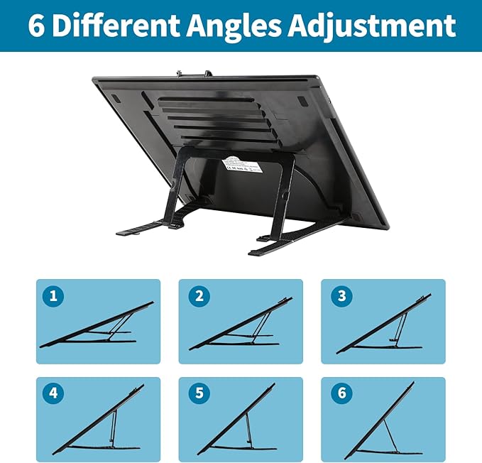 • 【 Carry Bag, SELF-SUPPORTING STAND and Top Magnetic Clip 】 The carrying bag is padded and lined with soft anti-scratch fabric, which helps to keep the screen protected and make it more durable. It also comes with a shoulder strap to carry the bag. The A3 LED tracing pad features with a built-in stand with 6 levels of height adjustment, allows you to adjust the angle at different angle, helping you to correct the posture and reducing neck, back and eye fatigue while improving working efficiency