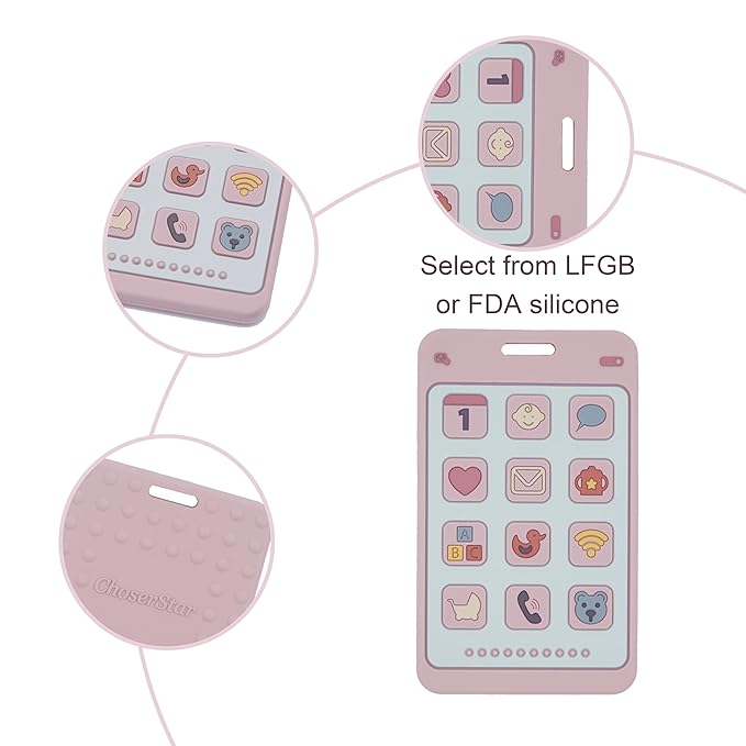 Soft Silicone Phone Shape Teether Boys Girls Baby Molar Teether Chew Toys, Teething Toy (Pink)