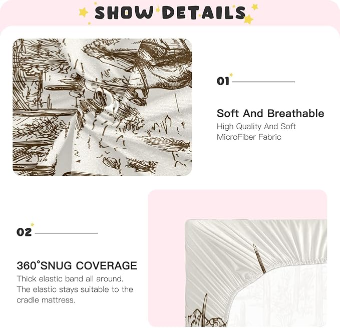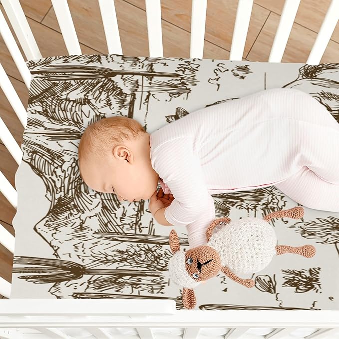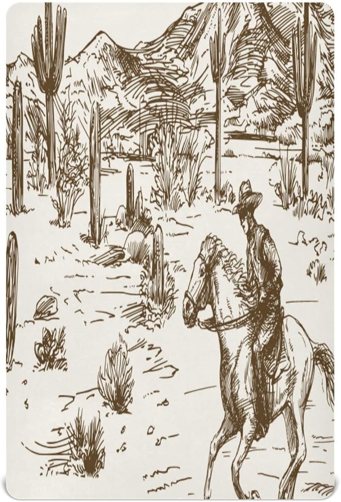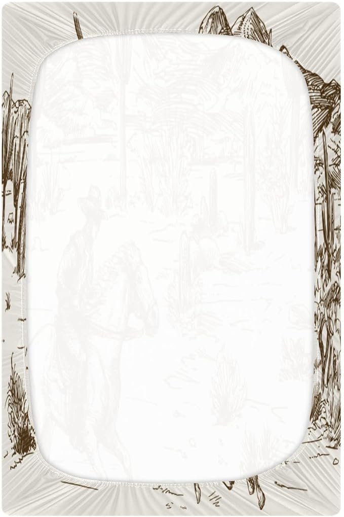 Western Desert Cowboy Crib Sheets for Boys and Girls, Fitted Baby Crib Sheets Soft and Breathable Mini Crib Sheets 39 X 27 X 5 Inches