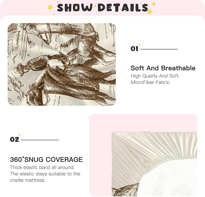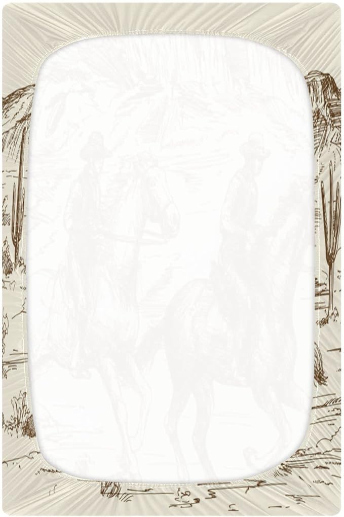 Western Desert Cowboy Crib Sheets for Boys and Girls, Fitted Baby Crib Sheets Soft and Breathable Mini Crib Sheets 39 X 27 Inches