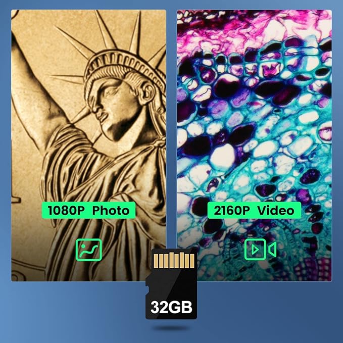 • 【Save Images and Videos with Included 32 GB Card】Support capture and video recording. You can take pictures and record videos during the observation process in real-time (32 GB Card Included)
