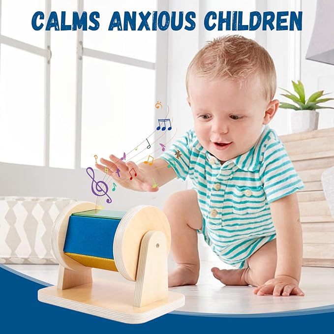 • 🌈【Stimulates Auditory Senses】 The drum contains rolling wooden blocks that produce soft, soothing sounds when spun. It offers multi-sensory stimulation while creating a calm and enjoyable play experience for babies.