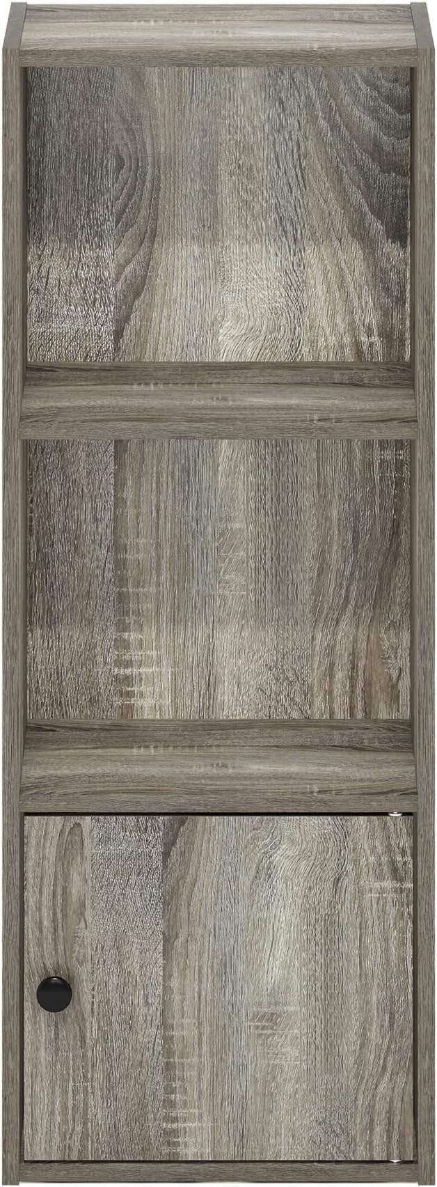Furinno Luder Shelf Bookcase with 1 Door Storage Cabinet, French Oak