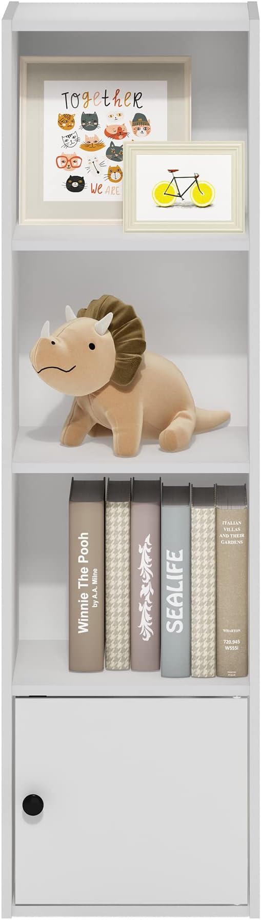 • Features 3 open shelves for display and storage. Closed cabinet at the bottom to keep your room away from clutter. Each shelf holds up to 15lbs.