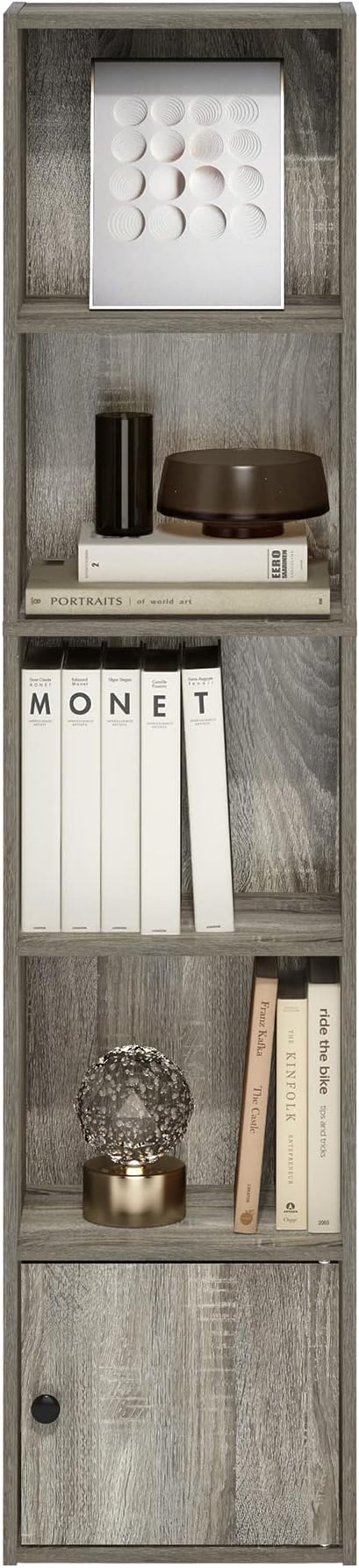 • Features 4 open shelves for display and storage. Closed cabinet at the bottom to keep your room away from clutter. Each shelf holds up to 15lbs.