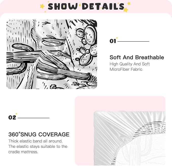 Western Desert Landscape Crib Sheets for Boys and Girls, Fitted Baby Crib Sheets Soft and Breathable Mini Crib Sheets 52 X 28 X 9 Inches