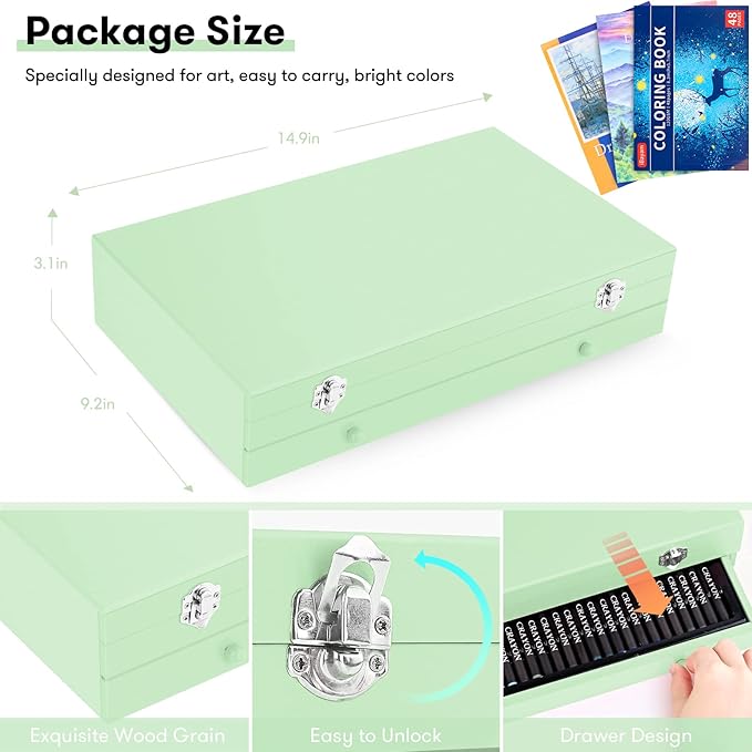 • 【Premium Quality, Deluxe Art Kit】The Deluxe art case has everything you need to get started creating in a compact wooden case! You can begin drawing, coloring and painting as soon as you open the box. Specially designed with 2 big sketchbooks, 1 coloring book, 1 Gift Box. Great art set for any level of artist. This art case makes a great Gift for adults and kids, girls and boys, they are going to have so much fun!