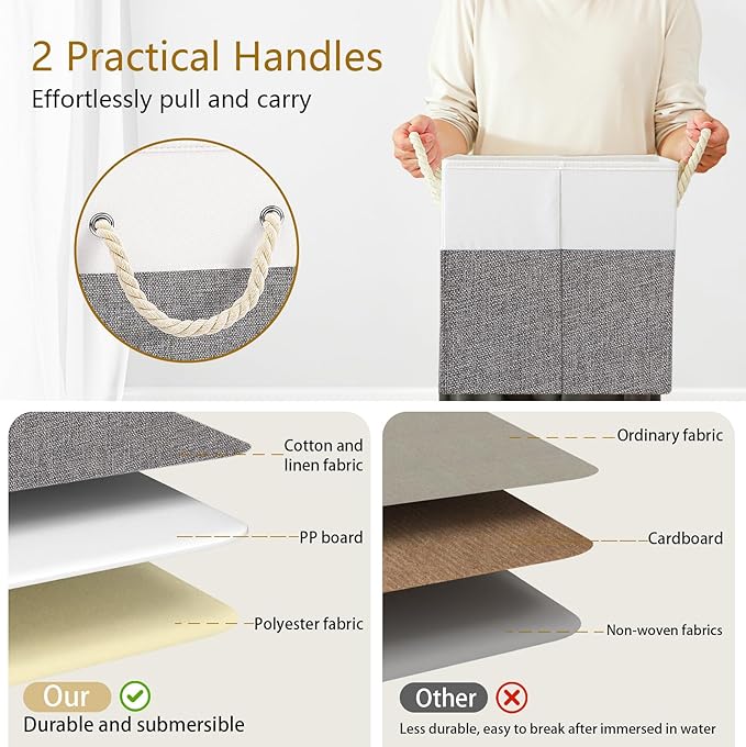• Fashionable Bins: Designed to match interior decor and style in any room in the home; 2 colors are available. you can choose the color and size according to your preference. the storage box is easy to clean and can be washed with water or wiped with a damp cloth