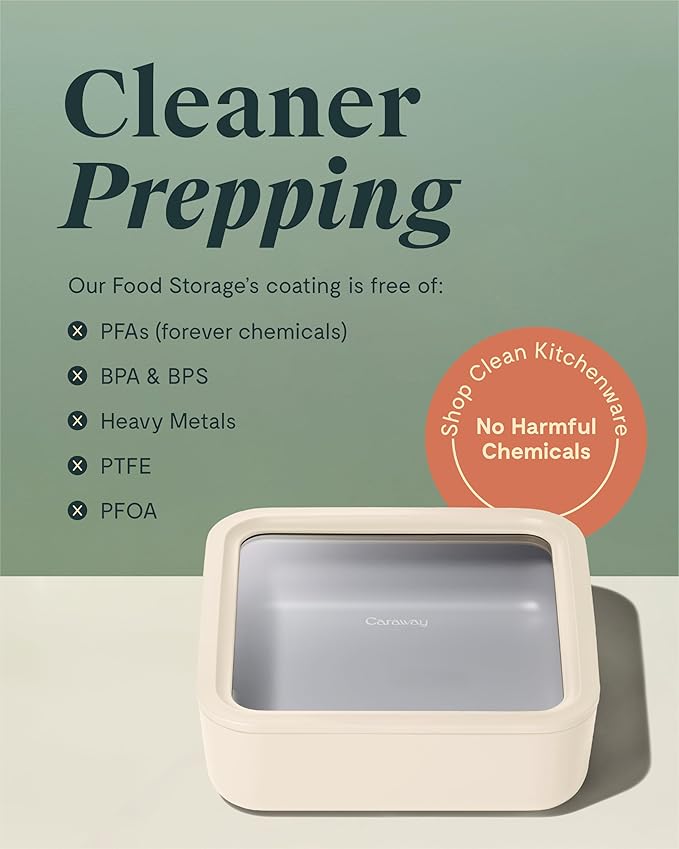 • BEAUTIFULLY DESIGNED: The cleanest, best-looking approach to storing your food. Our glass container features a clear glass lid for easy viewing Each container comes in modern colors that will match with your entire Caraway collection.