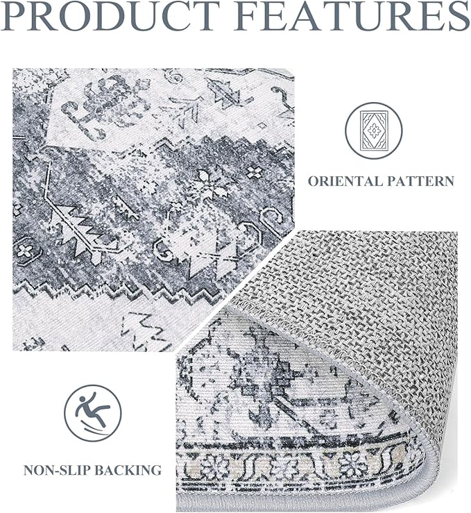 Lahome Boho Washable Rugs for Entryway - 2x3 Small Non-Slip Kitchen Rug Throw Lightweight Area Rugs for Bedroom Grey Print Oriental Distressed Bathroom Mat Floor Doormat Carpet for Laundry Living Room