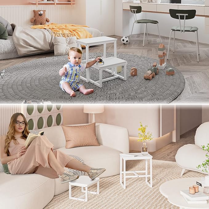 • 【3 in 1&well designed】iTsst step stool can change three forms.①Solid 2-step stool ② Small stool can be stored underneath the high stool ③ Can be split into two stools for separate use.
