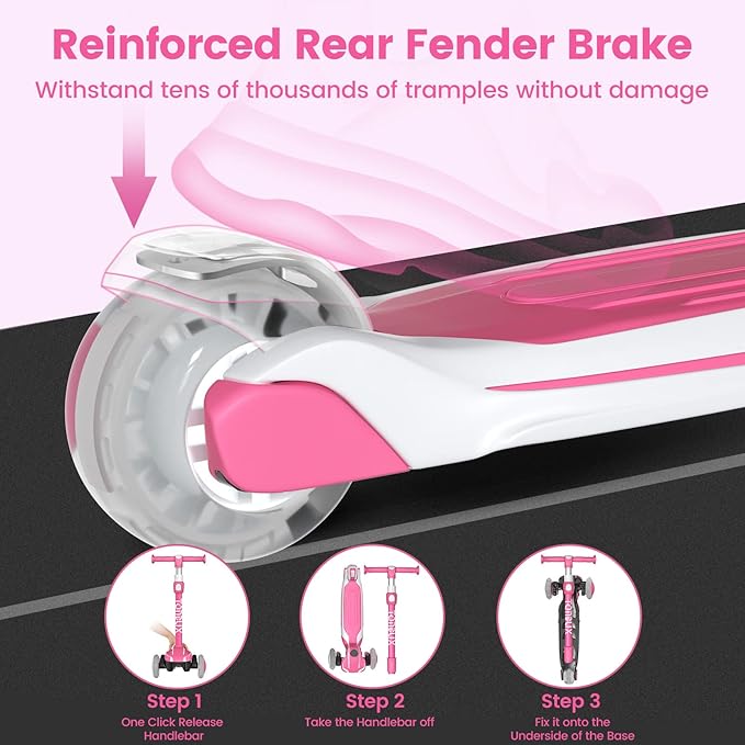 • 【Easy to Assemble】Nothing more to do but snap handlebar of kids scooters in place and get it to click. One step and go!