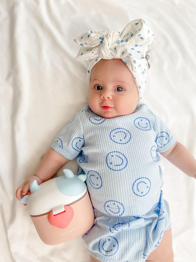 • 【Safety Material 】- With the same non-toxic and odorless material as the sippy cup, you can rest assured to use it store baby needed food. There are two tentacles on the milk powder dispense's lid are covered with soft rubber, which is round and soft. It is fine for baby to bite them.