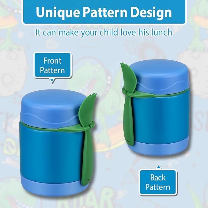 • Leak Proof Design: Feel confident that our leak-proof food jars will fit in your lunch bag without worrying about spilling messes. The insulated thermo food jar comes with a food-grade spoon for your child's convenience.