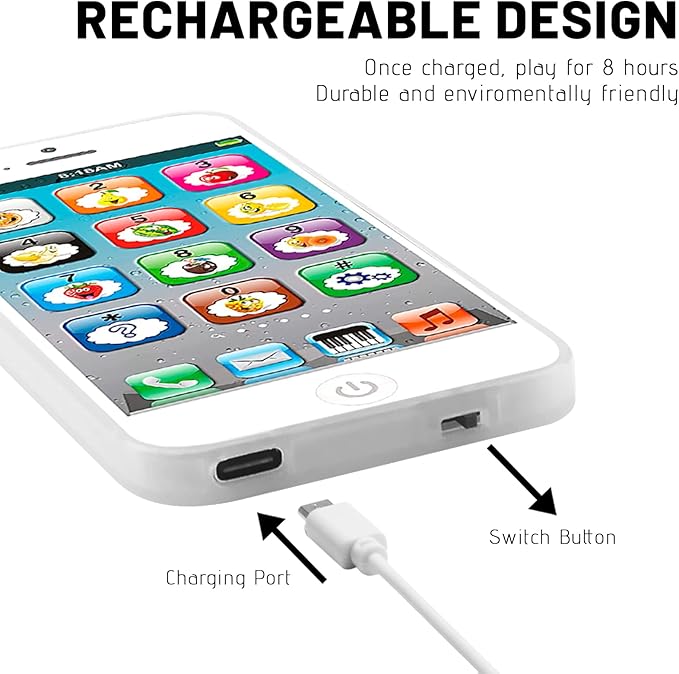 • UNIQUE DESIGN: Toy phone looks like a small Phone, has USB for charging like a mobile phone. Let baby have their own phone and no longer taking yours