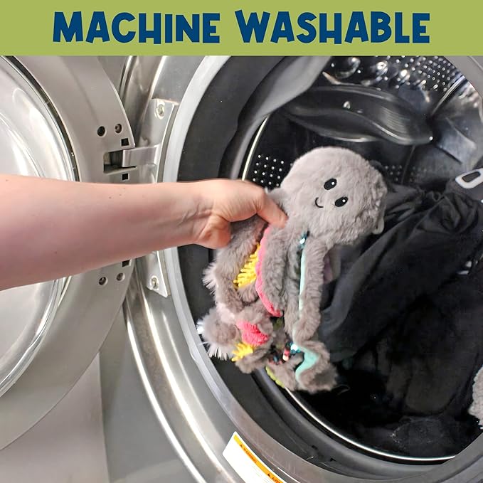 • UNIQUE SENSORY EXPERIENCE: Baby Quiggly the Mini Octopus Plush is the perfect travel friend and provides your child with a unique sensory experience. Each of the Octopus tentacles has a different sensory material for your child to discover.