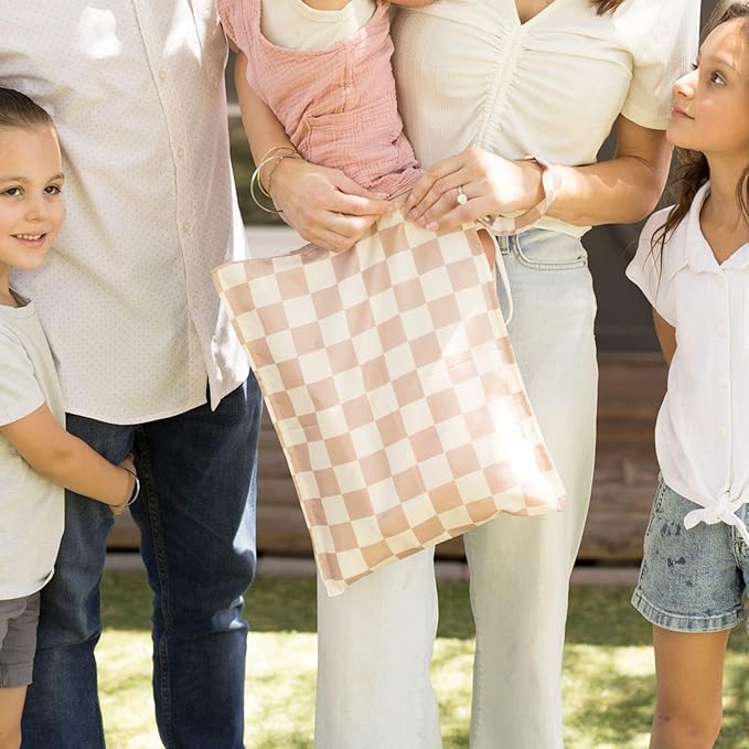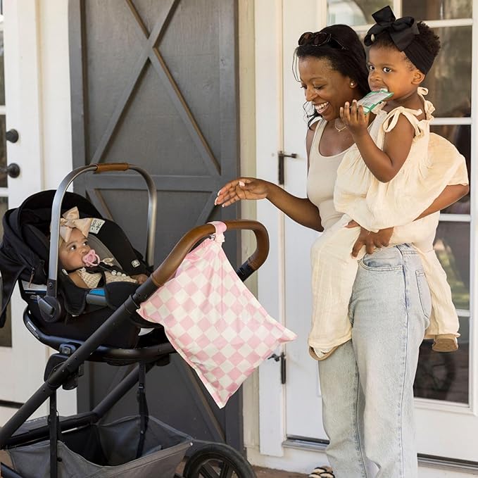Tiny Twinkle Mess-Proof Waterproof Wet Dry Bag | 2-Pack Reusable Wet Bags for Swimsuits & Baby Clothes | Leakproof Wet Bag for Travel & Diaper Changes for Baby (Pink, Brown Checkers)