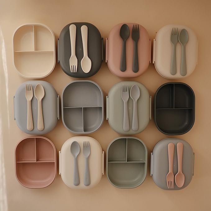 • Each lunchbox includes a matching Fork and Spoon utensil set that locks in place and stays clean with the removable divider.