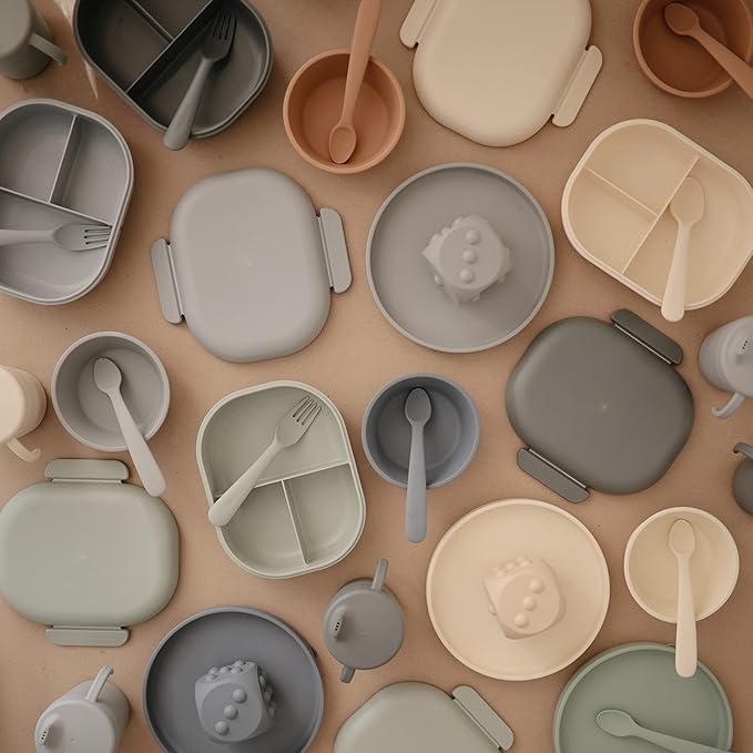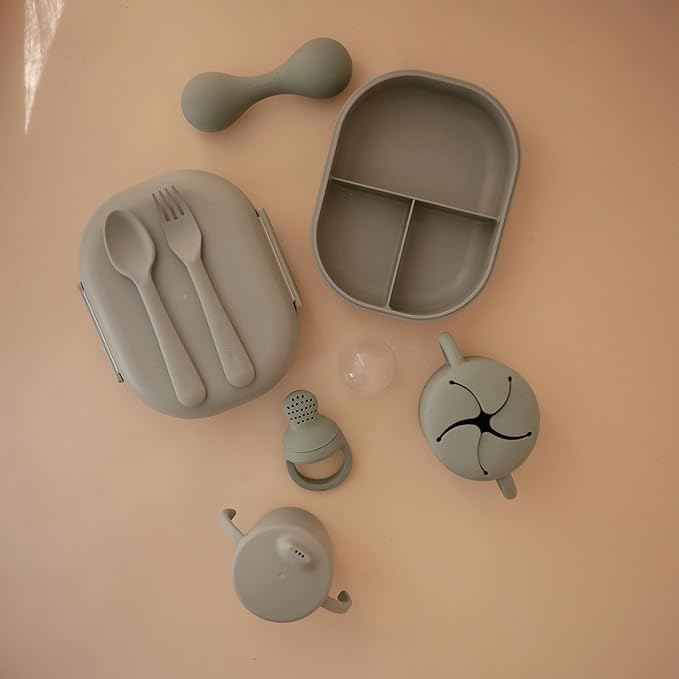 mushie Kids Bento Lunch Box | 3-Compartment & Removable Divider + Fork & Spoon Utensils | Great For Meals, School, Snacks On-the-Go | Dishwasher Safe (Sage)