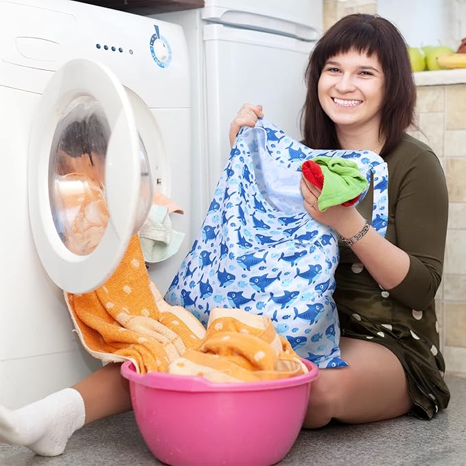 Shappy 2 Pcs Large Travel Laundry Bag Washable Waterproof Wet Dry Large Dirty Clothes Bag Bathing Workout(Shark)