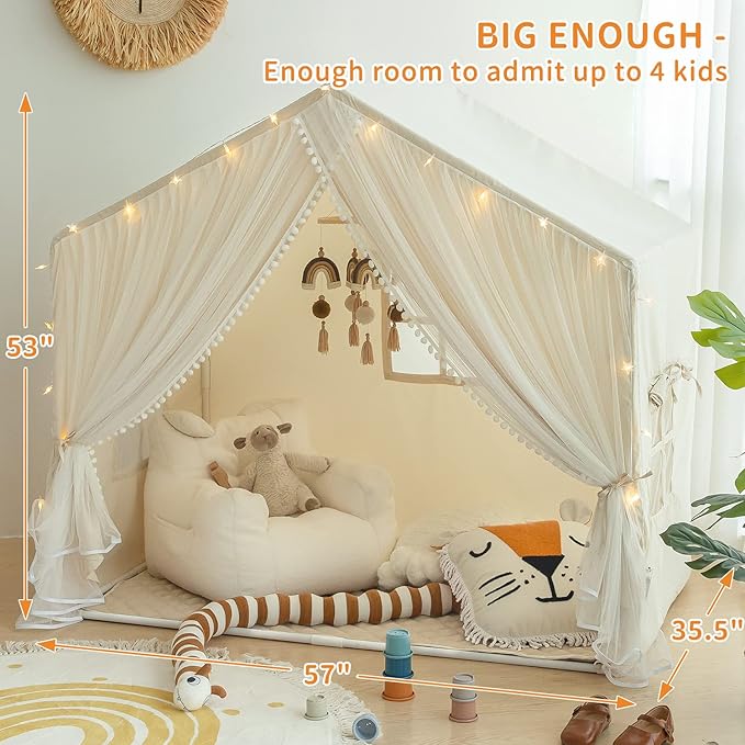 • Large Space: 57''Lx35.5''Wx53''H. This playtent is suitable for crib matters, which can accommodate 3-4 children and even adults can enter.