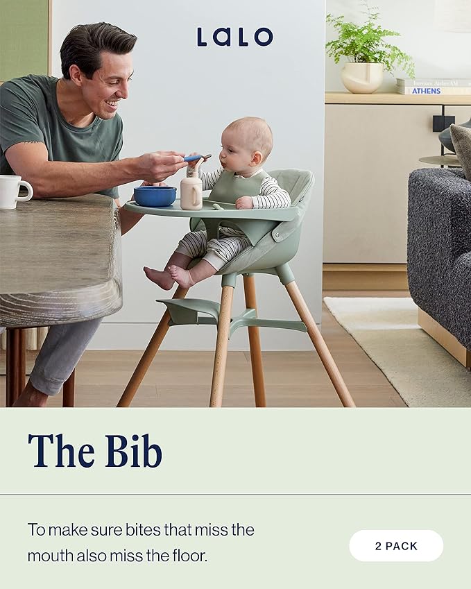 Lalo The Bib - Waterproof, Non-Toxic Silicone Baby Bib with Adjustable Neck Band & Silicone Food Pouch Catcher, Set of 2