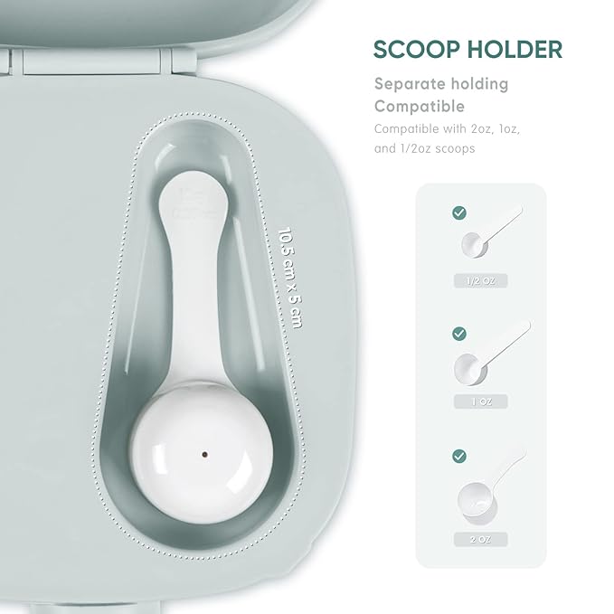 • FORMULA DISPENSING SCOOPS - Our designer specially sized this dispensing scoop 2 ounces, easily make 2oz of milk, this scoop is the same size as most major baby formula brands. The handles easy to grip, it helps you make the baby milk quickly and easily. and our container has a separator layer design to hold the scoop separately. If you have a special sized scoop, don't be worried, we designed this holding area loose enough to compatible with most other different sized scoops.