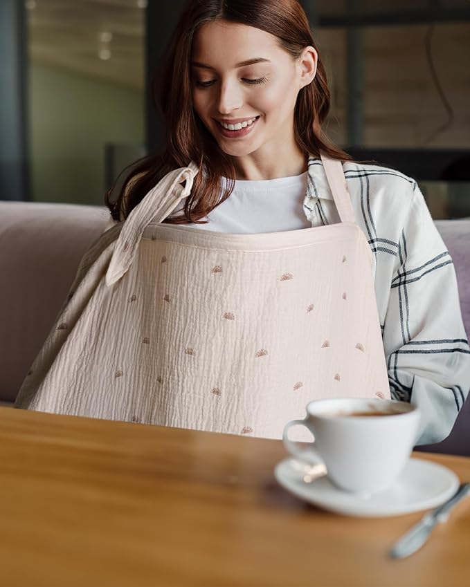 • Premium Muslin Cotton: The nursing cover is made of muslin cotton, which is soft, lightweight and breathable. It keeps cool and cozy for both mothers and babies, even in hot summer. Plus, the muslin material stays soft even after washing