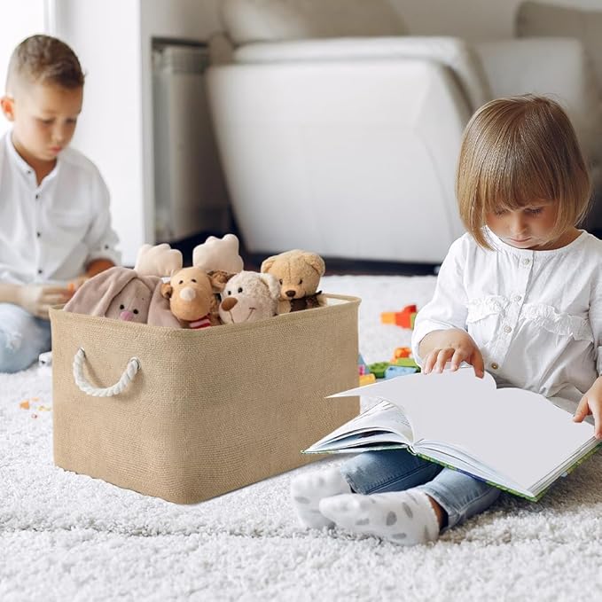 • Perfect storage basket for books, magazines, art & craft supplies, clothes, shoes, seasonal items, games, holiday ornaments, and more in the home or office. Makes a thoughtful gift for any holiday, housewarming, and more. shelf baskets for storage organizer shelves, bookcase, desk and more