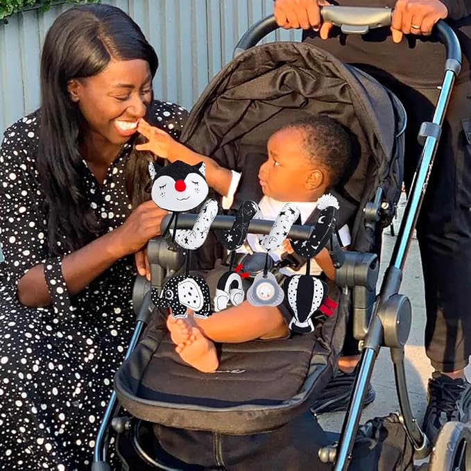 • √ Widely Use: It’s easy to spiral the infant activity toys on car seat, baby carrier, swing, rocker, bassinet stroller bar, crib rails, shopping cart handles, etc. Great present for baby showers, birthday, Children’s Day, Thanksgiving, Christmas, etc.